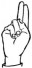 На ћирилици написано ДУШИЦА БЕТЕГАЛО састоји се из 14 слова [?]. Исписано ћириличном једноручном азбуком за глувонеме: